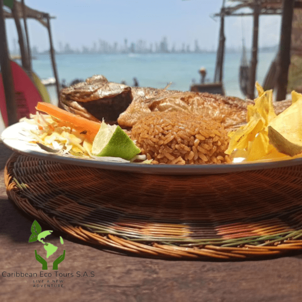 - -Almuerzo típico (pescado frito, arroz de coco, ensalada) *Se puede cambiar pechuga a la plancha*
