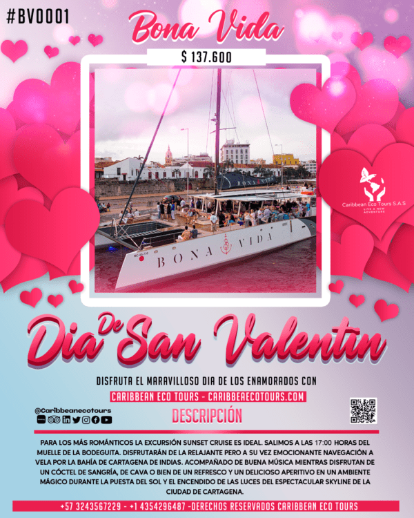 Para los más románticos la excursión Sunset Cruise es ideal. Salimos a las 17:00 horas del muelle de la Bodeguita. Disfrutarán de la relajante pero a su vez emocionante navegación a vela por la Bahía de Cartagena de Indias. Acompañado de buena música mientras disfrutan de un cóctel de sangría, de cava o bien de un refresco y un delicioso aperitivo en un ambiente mágico durante la puesta del sol y el encendido de las luces del espectacular skyline de la ciudad de Cartagena